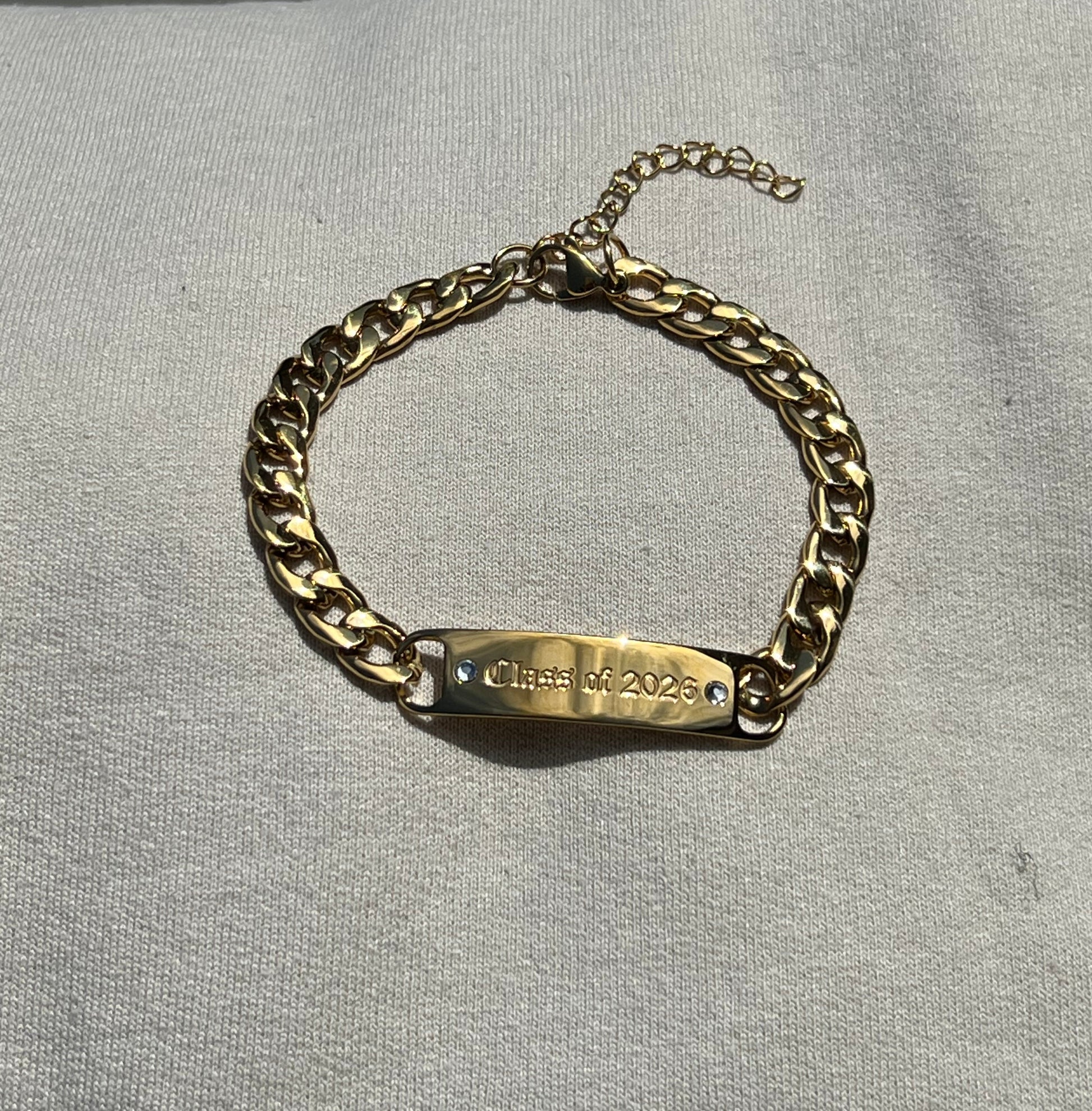 Your fit just got upgraded with the Cuban Link Bracelet. An icon to add to your collection, this Cuban Bracelet offers the perfect weight and shine for daily wear. Featuring "Class of 2026" engraving between 2 white stones.